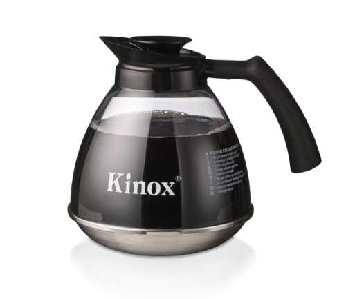 Okrossbar kanna som rymmer 1,7 liter. Kannan har ett lock med gångjärn, som är lätt att använda, och plasthandtag. Kinox, rostfri botten.